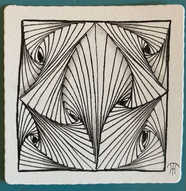 And since I’m in a black and white mood, here’s shoutout to my sister Holly, who became a certified Zentangle instructor last month. This pattern is called Paradox.