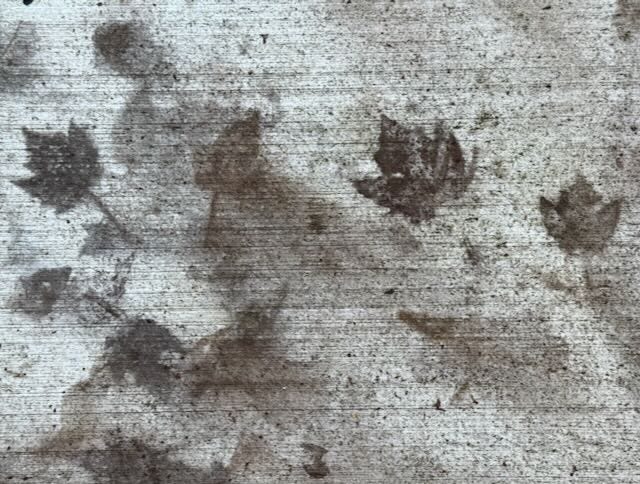 The trees here are still dropping, and the city is clearing them away. They linger, though, leaving their ghosts on the pavement. Kind of like leaf fossils.