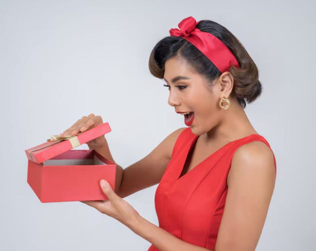 Untie the ribbon, open the box and take the moment out for a spin. This is an exercise we do in improv class—we go around the circle passing an imaginary box to the person next to us, who opens it with great anticipation and tells us what they found inside. It’s also what we do when we’re trying to figure out what the most interesting thing our scene partner has just said or done that we could build upon to take the improvised scene to a new level.
